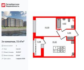 Продается уютная 1-комнатная квартира от застройщика в жилом комплексе ''Setl Ривьера'' в активно развивающимся Невском районе.До метро можно добраться на транспорте всего за 10 минут.Удобная, классическая, функциональная европланировка, большая кухня-гостиная 14.21 м², вместительная прихожая 3.73 м². Общая площадь квартиры - 32.23 м², жилая 10.07 м², высота потолка 2.77 м.Квартира продается с отделкой ''Норд Лайн светлый плюс''.Что особенного в ЖК ''Setl Ривьера''?• Первая береговая линия Невы. 5 км до центра Петербурга• ''Активити парк'' - пространство для занятий спортом и отдыха. ''Ривьера парк'' с променадом и панорамной ротондой• Масштабные дворы 10 000 кв.м. с авторским ландшафтным дизайном• Двухуровневые единые входные группы• Видовые квартиры с террасами, каминами и саунами