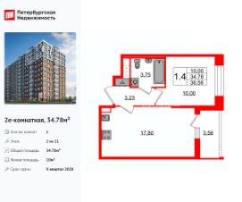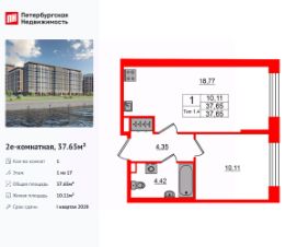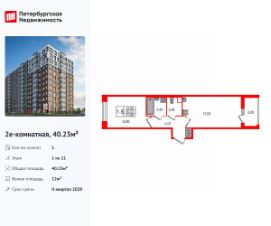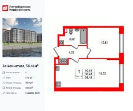 Продается просторная 1-комнатная квартира от застройщика в жилом комплексе ''Setl Ривьера'' в активно развивающимся Невском районе.До метро можно добраться на транспорте всего за 10 минут.Удобная, классическая, функциональная европланировка, большая кухня-гостиная 19.02 м², просторная прихожая 4.26 м². Общая площадь квартиры - 38.41 м², жилая 10.61 м², высота потолка 3 м.Квартира продается с отделкой ''Норд Лайн светлый плюс''.Что особенного в ЖК ''Setl Ривьера''?• Первая береговая линия Невы. 5 км до центра Петербурга• ''Активити парк'' - пространство для занятий спортом и отдыха. ''Ривьера парк'' с променадом и панорамной ротондой• Масштабные дворы 10 000 кв.м. с авторским ландшафтным дизайном• Двухуровневые единые входные группы• Видовые квартиры с террасами, каминами и саунами