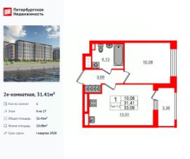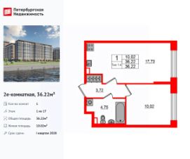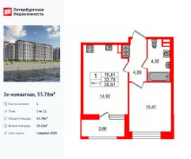 Продается уютная 1-комнатная квартира от застройщика в жилом комплексе ''Setl Ривьера'' в активно развивающимся Невском районе.До метро можно добраться на транспорте всего за 10 минут.Удобная, классическая, функциональная европланировка, большая кухня-гостиная 15.02 м², вместительная прихожая 3.61 м². Общая площадь квартиры - 32.48 м², жилая 10.36 м², высота потолка 2.77 м.Квартира продается с отделкой ''Норд Лайн серый плюс''.Что особенного в ЖК ''Setl Ривьера''?• Первая береговая линия Невы. 5 км до центра Петербурга• ''Активити парк'' - пространство для занятий спортом и отдыха. ''Ривьера парк'' с променадом и панорамной ротондой• Масштабные дворы 10 000 кв.м. с авторским ландшафтным дизайном• Двухуровневые единые входные группы• Видовые квартиры с террасами, каминами и саунами