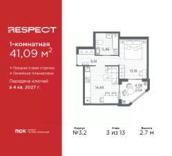 Однокомнатная квартира-студия с предчистовой отделкой в ЖК ''RESPECT'' на 12 этаже. Общая площадь: 24.31 кв.м., площадь гостиной 15.3 кв.м., из которых 5 кв.м. выделено под кухонную зону. Все окна выходят на одну сторону. В квартире один балкон, один совмещенный санузел. Высота потолков 2.7 м. Дом монолитный, многоподъездный, переменной этажности, от 10 до 13 этажей. Квартира находится в 1-й секции высотой 13 этажей в корпусе 3.2. На этаже 5 квартир. В подъезде 1 пассажирский и 1 грузовой лифт. Начало строительства - 3 квартал 2025 года. Окончание строительства - 4 квартал 2027 года. Оформление сделки по договору долевого участия. В шаговой доступности от жилого комплекса имеются станции метро (расстояние по прямой): ''Лесная'' (800 м), ''Площадь Мужества'' (1.4 км), ''Выборгская'' (1.9 км), также недалеко от этого корпуса расположены станции метро: ''Академическая'', ''Политехническая''. Жилой квартал ''RESPECT'' строится на Полюстровском пр, 87, в одной из самых востребованных локаций Петербурга. В 10 минутах пешком - метро ''Лесная'' и в 10 минутах на транспорте - Петроградская сторона. Высота домов от 7 до 13 этажей. Квартиры сдаются с отделкой white box и с чистовой отделкой. На территории Respect строится школа на 1125 учащихся и детский сад на 240 мест. Запроектированы собственная газовая котельная, закрытая территория, дворы без машин и подземные паркинги с лифтами.В проекте предусмотрены трапециевидные балконы или остекленные лоджии, которые, с одной стороны, исключают монотонность фасада, являясь декоративными элементами, с другой дополнительным функциональным пространством в квартирах. Цветовая гармония фасадов каждого дома раскрывает характер квартала. Коричневый цвет клинкерного кирпича со структурой водяных штрихов — цвет уюта и безопасности, сдержанности и надёжности. Вентилируемые фасады облицованы клинкерным кирпичом. Его высокая прочность позволяет давать 100 лет гарантии на этот материал. Водопоглощение клинкерного кирпича составляет менее 5%, за счет чего у него высокая теплопроводность и прочность. В квартале запроектированы внутренние закрытые территории дворов домов без доступа автомобилей и безбарьерная среда для велосипедистов и колясок. Предусмотрены IP-домофония с функцией дистанционного открывания калиток и парадных, а также дистанционный сбор показаний счетчиков и мобильное приложение для жителей. Для безопасности жителей квартала - круглосуточное видеонаблюдение и служба охраны. В каждой квартире предусмотрены внешние корзины для кондиционеров. Вся территория квартала будет связана единой концепцией благоустройства, разработанной ландшафтным бюро L.BURO. На эксплуатируемой кровле на уровне первого этажа в домах 1 и 4 будут обустроены общественные видовые террасы. Это станет не только привлекательным местом с красивым видом, но и удобным, многофункциональным пространством. Дизайн парадных зон и входных групп - сочетание лаконичности отделки и декоративных элементов с текстурами из натурального камня и дерева