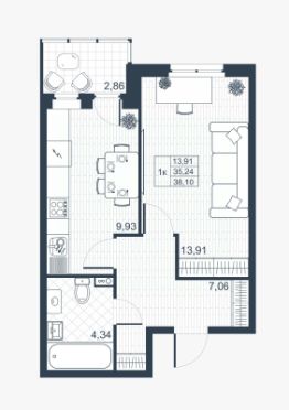 1-к, Ново-Антропшино ЖК, 18 Показать на карте