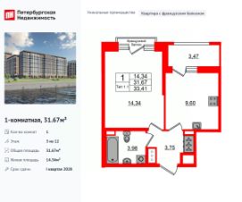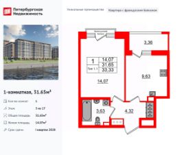 Цена со скидкой до 30% в прямой продаже от застройщика — только в этом месяце. При покупке апартаментов - паркинг за полцены. На все апартаменты действует беспроцентная рассрочка. Купите на распродаже! Покупка недвижимости в Zoom на Неве сейчас со скидкой до 30% позволит через 2 года получить доход до 6 300 000 руб. Роскошные виды на Неву. 1-к апартамент в комплексе класса бизнес-лайт Zoom на Неве на 9-м этаже. Общая площадь 35,23. Чистовая отделка.Zoom на Неве расположен в новом месте силы рядом с центром города на первой линии Октябрьской набережной в Невском районе, всего в 7 км от исторической части Санкт-Петербурга. Большой выбор эргономичных и максимально продуманных планировок позволит каждому найти вариант по душе. Панорамные виды на Неву, благоустроенные дворы, детская игровая комната, подземный паркинг, коммерческие зоны на первом этаже, это и многое другое делает Zoom на Неве идеальным местом для жизни. Особенности:- Панорамные виды на Неву и город,- 10 мин. до Парка Строителей, 15 мин. до Лондон-молла, Ленты, Максидома, 15 мин. до метро ''ул. Дыбенко'', 12 мин. до КАД, 10 мин. до центра,- Единая архитектурная концепция. Сдержанные и монументальные фасады в неоклассическом стиле,- Парадный лобби для жильцов. Единый вход в комплекс с администратором, зоной ресепшн и охраной, зоной для бесконтактной доставки посылок и еды,- Подземный отапливаемый паркинг с доступом из парадной,- Доступно 3 варианта отделки на выбор: черновая, предчистовая (White Box) и чистовая,- Зоны отдыха для взрослых и детей, Wi-Fi-покрытие во дворе и в паркинге, зоны для питомцев, арт-объекты и много другое. В шаговой доступности вся необходимая инфраструктура от детских садов и школ до супермаркетов и салонов красоты,- Все происходящее контролируется видеокамерами, а покой внутренней территории и безопасность ваших детей гарантируется полным отсутствием транспорта во дворах в концепции ''без машин''.