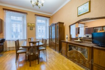 Сотрудничаем с агентами 4 % пополам.Идеальная квартира для семьи с 2-3 детьми! Квартира Евро 5 в историческом доме архитектора А.Х. Пеля 1860 года постройки, с известной историей всех, кто жил в этом доме. Более того, в кв. 9 жил Л.Н. Гумилев. Грамотная планировка: зона столовой и кухни, гостиная, 2 изолированные спальни, кабинет, 2 с/у, балконПреимущества:- Абсолютный центр С-Петербурга- Всего 1 минута до метро- Под тапочкиОсновной вид из девяти окон на запад, на ул. Б Московская. По нашей стороне улицы проходит пешеходная зона. С балкона открывается изумительный вид на перспективу Владимирского пр и Владимирскую пл. Абсолютно тихо. Окна высотой 2,2 м, с двойным стеклопакетом. Потолок 3,6 м. На стенах экологичные обои производства Франции и Италии. Полы инженерная доска из дуба. Межкомнатные двери, высотой 2,2 м, из массива дуба. Гардеробные шкафы от Komandor. В квартире большой и оригинальный коридор. На стенах много разноплановых картин. Все обустроено по авторскому дизайн-проектуКухня совмещена со столовой. Кухонная мебель в классическом стиле из массива дуба, со встроенной техникой: варочная поверхность и духовой шкаф Ariston, ПММ Bosch, холодильник Samsung. Мраморные столешница и фартук с шлифовальной текстурой. Есть барная стойка и великолепная, изящная столовая группа (стол, стулья, буфет) из Италии. Каменный пол из итальянского керамогранита с подогревомГостиная, 2 спальни и кабинет, обустроены в едином классическом стиле с использование Итальянских гарнитуров корпусной и мягкой мебели из массива. Фантастическая красота и роскошь. Великолепно подобраны обои на стенах и шторы на окнах. Потрясающие люстры от EichholtzДва санузла. На полу испанский керамогранит с подогревом. Раковина, унитаз, биде Duravit. Ванна-джакузи Whirlpool, Душевой уголок Viscount. Смесители Oras. Стиральная машина Haier. Французские натяжные потолки SefВ доме доброжелательные консьержки и видеонаблюдение. Идеальная, очень чистая парадная, с одинаковыми дверями в квартиры. Есть места для колясок и велосипедов. В закрытом внутреннем дворе можно парковать автомобиль(и) на любом месте. Стены кирпич, перекрытия железобетонные. Капитальный ремонт дома: фундамент в 1963 г, кровля в 2005 г, фасад и системы жизнеобеспечения, включая установку газовой котельной в 2012 гРядом Загородный и Владимирский пр. с магазинами и ресторанами на любой уровень. Государственные и частные, детские сады и школы. В соседнем здании начальная школа 300. Центры развития детей. Спортивные клубы и фитнес-центры. Государственный экономический университет. В непосредственной близости большое количество музеев, театров, парков, исторических мест города Всего 1-2 мин пешком: метро ''Владимирская'', знаменитый Кузнечный рынок, ТЦ Владимирский пассаж, Собор Владимирской Иконы Божьей Матери. Невский пр - 600 метров. Отличная транспортная доступностьВсе остается новому собственнику.АН Винидиктов и партнеры, участник ассоциации агентств элитной недвижимости АРЕААрт.