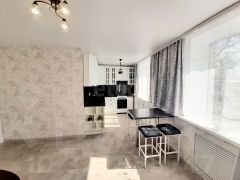 1701429 Продам однокомнатную квартиру с ремонтом в кирпичном доме по адресу: Ленинградская область, Кириши, улица Строителей, д. 2. Квартира с системой ''Умный дом'', имеется балкон с хорошей панорамой на город, выход на который осуществляется из комнаты, квартира с современным ремонтом где пол выравнен бетонной стяжкой, половое покрытие - ламинат во всех помещениях кроме санузла, там пол облицован кафельной плиткой, пол во всех помещениях с подогревом, электропроводка заменена и установлен новый прибор учета электричества, выполнен монтаж натяжных потолков с подсветкой во всех помещениях кроме санузла, окна - стеклопакеты, межкомнатные двери современная, входная дверь надежная. Кухонная мебель остается новым собственникам в подарок. Квартира теплая, светлая, не угловая, имеется лифт, этаж 9/9. Санузел совмещенный, облицован кафельной плиткой, произведена замена труб, унитаз установлен с инсталляцией, новая ванна установлена и раковина. Общая площадь квартиры составляет 28,9 кв.м., площадь комнаты 16,5 кв.м., площадь кухни 8 кв.м., в комнате установлен встроенный шкаф, осталось только дверцы шкафа оформить в своем стиле. Подъезд чистый. Инфраструктура полностью развита во дворе дома все есть от магазинов, до автобусной остановки, МФЦ на первом этаже. Парковка для авто во дворе свободная, детская площадка через дом.