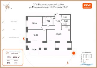 Трехкомнатная квартира в Клубный квартал ''Ассамблея'' на 2 этаже. Квартира без отделки, новый собственник может сделать ремонт по своему дизайн-проекту. Общая площадь: 96.54 кв.м., жилая: 42.5 кв.м., площадь просторной кухни-столовой: 24.98 кв.м. Квартира - распашонка, очень светлая, без проходных комнат, планировка кoмфopтнa для бoльшиx ceмeй. В квартире одна лоджия, два совмещенных и один раздельный санузел. Высота потолков 3 м. Дом монолитный, двухподъездный, высотой 12 этажей. Квартира находится в 1-й секции в корпусе 2. На этаже 5 квартир. В подъезде 1 пассажирский и 1 грузовой лифт. Начало строительства - 2 квартал 2025 года. Окончание строительства - 3 квартал 2028 года. Оформление сделки по договору долевого участия. В шаговой доступности от жилого комплекса находятся станции метро (расстояние по прямой): ''Горный институт'' (1.0 км), ''Василеостровская'' (1.4 км), ''Приморская'' (1.5 км), также недалеко от этого корпуса находятся станции метро: ''Спортивная'', ''Чкаловская''. ''Клубный квартал Ассамблея'' — проект бизнес-класса на Васильевском острове, в самом сердце исторического Петербурга. Комплекс состоит из пяти корпусов переменной этажности — от 7 до 12 этажей — с выразительной архитектурой в стиле неомодернизма: светлый клинкер, панорамное остекление, просторное лобби с потолками высотой почти 8 метров. Потолки — до 3,2 метров. Подземный паркинг на 667 машиномест. Комфорт и инфраструктура Проект ориентирован на комфортную городскую жизнь. В закрытом дворе — ландшафтное озеленение, современные детские и спортивные площадки. Внутренний клуб для резидентов включает коворкинг, переговорные, кинозал, фитнес и бьюти-зону. IP-домофония с просмотром камер видеонаблюдения, дистанционное открывание дверей и доступа на территорию и в парадную со смартфона и планшета, просмотр показаний счетчиков, приложение для жителей PSK Home. Локация Расположение на Васильевском острове — сильная сторона проекта. До четырех станций метро (''Горный институт'', ''Василеостровская'', ''Спортивная'', ''Приморская'') — 515 минут пешком. В шаговой доступности — зелёные зоны, культурные учреждения, в том числе сад ''Василеостровец'' и ДК имени Кирова. Основные магистрали Большой, Средний и Малый проспекты, Наличная и Уральская улицы. Съезд на ЗСД расположен недалеко от станции метро ''Приморская'', близ береговой линии. Благовещенский и Дворцовый мосты соединяют остров с центром города, а мосты Тучков, Биржевой и Бетанкура — с Петроградской стороной. Застройщик Группа компаний ПСК является одной из ведущих девелоперских компаний Санкт Петербурга. На протяжении 18 лет она возводит в Северной столице качественное жилье премиум, бизнес и комфорт-класса, социальные объекты школы и детские сады, апарт-отели и торговые центры. Является шестикратным обладателем золотого знака ''Надежный застройщик России''. #zMB8Mf