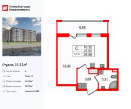 Продается уютная студия от застройщика в жилом комплексе ''Парадный ансамбль'' в престижном Московском районе.До метро можно добраться на транспорте всего за 20 минут.Уникальная, функциональная европланировка, вместительная прихожая 3.11 м². Общая площадь студии - 21.85 м², жилая 15.36 м², высота потолка 2.77 м.Квартира продается с отделкой ''Норд Лайн светлый''.Что особенного в ЖК ''Парадный ансамбль''?• Инновационный Лицей Setl с оригинальной архитектурной концепцией и уникальной образовательной средой• Масштабное малоэтажное строительство в престижном Московском районе• Рекреационные зоны: парадный парк в центре квартала, ручей с собственной набережной, центральная площадь, ресторанный комплекс и пешеходный бульвар• Фасады из керамогранита и кирпича с яркими и акцентными входными группами• Две самые большие площадки Setl Kids и Setl Sport• Уникальные квартиры.High Flat на последних этажах, палисадники у квартир на первом этаже, семейные секции, квартиры с саунами и окном в ванной