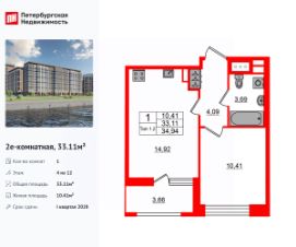Продается уютная 2-комнатная квартира от застройщика в жилом комплексе ''Setl Ривьера'' в активно развивающимся Невском районе.До метро можно добраться на транспорте всего за 10 минут.Удобная, классическая, функциональная европланировка, большая кухня-гостиная 16.05 м², вместительная прихожая 7.51 м². Общая площадь квартиры - 52.29 м², жилая 23.18 м², высота потолка 2.77 м.Квартира продается с отделкой ''NORD LINE WHITE ВК NEW''.Что особенного в ЖК ''Setl Ривьера''?• Первая береговая линия Невы. 5 км до центра Петербурга• ''Активити парк'' - пространство для занятий спортом и отдыха. ''Ривьера парк'' с променадом и панорамной ротондой• Масштабные дворы 10 000 кв.м. с авторским ландшафтным дизайном• Двухуровневые единые входные группы• Видовые квартиры с террасами, каминами и саунами