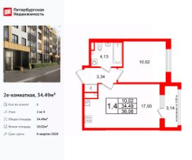 Продаётся 1к.кв. в ЖК Кинопарк от застройщика Холдинг ''РСТИ'' (Росстройинвест).Квартира находится в 9 этажном доме, в Очередь 1, Корпус 1 на 9 этаже. Общая площадь квартиры 34,30 кв.м.''Кинопарк'' — современный жилой комплекс, в котором главную роль играете Вы! Здесь возможен любой желанный сценарий жизни. Продуманные планировки, закрытые уютные дворы, развитая инфраструктура квартала — всё это обеспечит высокий уровень комфорта и будет вдохновлять на новые свершения. ''Кинопарк'' у парка ''Новознаменка'' возводится на бывшей территории ''Ленфильма''. Тема кино найдет отражение в отделке мест общего пользования и благоустройстве территории. ИнфраструктураЖилой комплекс расположен в обжитой части Красносельского района рядом есть магазины, детские сады, школы и другая необходимая инфраструктура. Напротив комплекса находится парк ''Новознаменка'', в шаговой доступности еще четыре парка и два сквера.Варианты отделкиПолная отделка Comfort в современном дизайне. Предчистовая отделка (white box) будут выполнены все грязные работы, клиенту останется нанести последние штрихи. Квартиру также можно приобрести без отделки.