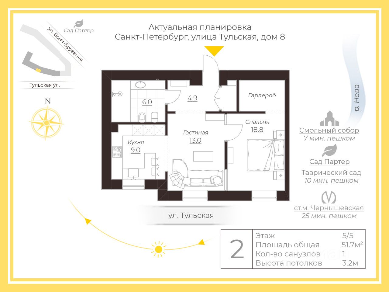 Арт. 117929335 Предлагается к продаже просторная квартира в сталинском доме с железобетонными перекрытиями, на улице Тульская 8, в самом сердце Петербурга. Никаких вложений не требуется! Пятый, последний этаж, с видом на улицу. Без лифта. Квартира очень тёплая, светлая, с высокими потолками 3.20 м! Чистая парадная с ремонтом, на этаже 3 квартиры. Сделано всё основательно, продумано до мелочей. Все полностью готово для жизни и не требует вложений, можно сразу заезжать. В квартире сделан высококачественный дизайнерский ремонт с использованием дорогостоящих натуральных материалов, и комплектацией бытовой техникой премиальных европейских брендов: плита TEKA, вытяжка ТEKA духовой шкаф Kuppersbusch, посудомоечная машина Kuppersbusch. Столешница из искусственного камня. Отдельная спальня 19 м². Просторная гардеробная комната. Ванная комната 6 м² с итальянской плиткой и сантехникой. Душевая с остеклением. В прихожей просторный встроенный шкаф. Из окон открывается светлый, приятный вид на улицу. Во дворе дома расположен большой зеленый двор с детской площадкой. Возможность парковки во дворе за шлагбаумом. Всегда есть свободные места. Отличная локация: Смольный парк — 7 минут пешком Набережная Невы — 5 минут Таврический сад — 15 минут Деловой центр и Невская ратуша — 5 минут Рядом большое количество престижных школ, гимназий, детских садов. Отличный вариант для жизни или инвестиций! Все документы готовы к сделке, один взрослый собственник, в собственности более 5 лет.