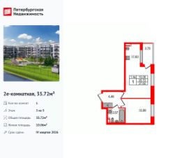 Продается просторная 1-комнатная квартира от застройщика в жилом комплексе ''Парадный ансамбль'' в престижном Московском районе.До метро можно добраться на транспорте всего за 20 минут.Удобная, классическая, функциональная европланировка, большая кухня-гостиная 17.63 м², просторная прихожая 4.46 м². Общая площадь квартиры - 35.72 м², жилая 10.06 м², высота потолка 2.77 м.Квартира продается с отделкой ''Норд Лайн светлый''.Что особенного в ЖК ''Парадный ансамбль''?• Инновационный Лицей Setl с оригинальной архитектурной концепцией и уникальной образовательной средой• Масштабное малоэтажное строительство в престижном Московском районе• Рекреационные зоны: парадный парк в центре квартала, ручей с собственной набережной, центральная площадь, ресторанный комплекс и пешеходный бульвар• Фасады из керамогранита и кирпича с яркими и акцентными входными группами• Две самые большие площадки Setl Kids и Setl Sport• Уникальные квартиры.High Flat на последних этажах, палисадники у квартир на первом этаже, семейные секции, квартиры с саунами и окном в ванной