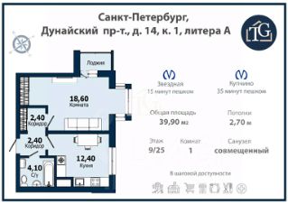 В прямой продаже светлая 1 ккв в жилом комплексе комфорт-класса Viva.До метро Звездная всего 13 минут пешком.Удобный выезд на Пулковское шоссе, Московское шоссе, Московский проспект, Дунайский проспект, КАД и ЗСД. Рядом с домом детский сад и новый корпус школы N 508( с бассейном) с углубленными знаниями в областях Искусство и Технология, спорткомплекс Газпром с бассейном, Школа Олимпийского резерва.Пекарни, магазины, ресторан, аптеки, развивающие кружки для детей, салоны красоты, йога - все в шаговой доступности 1-7 мин.Парк Городов Героев буквально на выходе из парадной.Приятные спокойные соседи, благоустроенный двор с детской площадкой, чистая парадная. Квартира укомплектована необходимой мебелью и техникой.1 совершеннолетний собственник, без обременений.