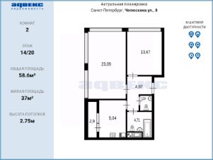 2-к, Челюскина, 8 Показать на карте