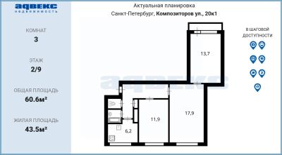 3-к, Композиторов, 29 корп. 1 Показать на карте