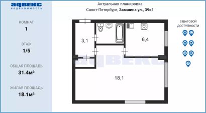 1-к, Замшина, 31 корп. 3 Показать на карте