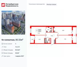 Двухкомнатная квартира от застройщика с первичной отделкой в ЖК ''Аквилон Stories'' на 12 этаже. Общая площадь: 52.33 кв.м., площадь просторной кухни-столовой: 11.41 кв.м. Высота потолков 2.70 м. Дом монолитно-блочный, двухподъездный, высотой 12 этажей. Квартира находится в 1-й секции в корпусе 2. На этаже 16 квартир. В подъезде 2 грузовых лифта. В настоящее время строительство завершено, дом сдан в 4 квартале 2023 года. Оформление сделки по договору купли-продажи. ''Аквилон Stories'' — это 3 монолитно-кирпичных корпуса комфорт-класса. В 1 корпусе 5 секций, 2 — 2 секции, 3 — 9 секций. Студии, 1-, 2-, 3- и 4-комнатные квартиры от 24 до 80 м2 организованы по принципу ''Разумные метры'' от Группы Аквилон. Высота потолков 2,7 м. Отделка White box. Планируется детский сад на 220 и школа на 825 мест, клуб ''Аквилон KIDS'', паркинг, сити-боксы и экопарк с игровыми стендами, уличной мебелью, плодовым садом и городскими огородами. Система ''умного дома'' inHOME, защита от шума SOUNDSTOP, клапаны инфильтрации воздуха VENT-IN, улучшенная инсоляция по стандарту LIGHT-IN. ЖК находится внутри КАД, в 10 минутах на авто до ст. м. ''Дыбенко''. Неподалеку лесной массив, парк и река Оккервиль. #zSAW3e