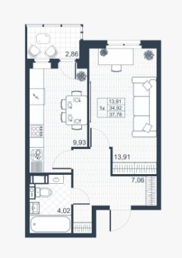 1-к, Ново-Антропшино ЖК, 18 Показать на карте