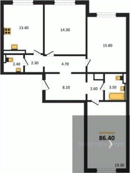Квартира: 3 к 86,40 кв.м., 1 этаж в комплексе Яблоневые сады, 1 очередь, корп.14.4, сдача: 4кв. , этажей: 17, адрес Воронеж г., Загоровского ул., д. 5/3, Застройщик: ВЫБОР.