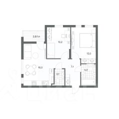 Продается квартира площадью 52.9 м² на 1 этаже 1 секции в River Park от компании ГК ''ТРЕСТ''. Площадь кухни 17.8 м².
