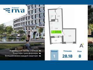 1-комн. квартира в ЖК ''Аквилон RIVA'' на 8 этаже. Квартира без отделки, после выдачи ключей можно делать ремонт. Общая площадь: 28.18 кв.м., площадь просторной кухни-столовой: 10.94 кв.м. Высота потолков 2.73 м. Дом монолитный, трехподъездный, переменной этажности, от 16 до 20 этажей. Квартира находится в 1-й секции высотой 20 этажей в корпусе 1. На этаже 15 квартир. В подъезде 2 пассажирских и 1 грузовой лифт. Окончание строительства - 4 квартал 2027 года. Оформление сделки по договору долевого участия. В шаговой доступности от дома расположена станция метро (расстояние по прямой) ''Девяткино'' (1.9 км). ЖК ''Аквилон RIVA'' - жилой комплекс комфорт класса у метро Девяткино от Группы Аквилон В самом сердце двора раскинулся собственный водоём — не просто украшение, а часть вашей повседневной жизни. Летом — это благоустроенная набережная для прогулок, отдыха в тени деревьев и тихих вечеров у воды. А зимой водоём превращается в залитый каток — место, где звучит смех, скользят коньки и рождаются семейные традиции. Здесь каждое время года раскрывает свой характер.Зона уединения:Места для занятия йогой и медитаций Мульти скворечники Качели с подсветкой для уютных бесед Высокие скамейки на набережной для отдыха и чтения на свежем воздухе Активная зона:Развивающие детские площадки для разных возрастов Спортивные площадки с зоной Ворк-аут, Столы для настольного тенниса Площадка для пляжного волейбола ПреимуществаУвеличенные окна с заполнением аргоном Корзины под кондиционеры Сити-боксы вместо балконов Безбарьерная среда Бесшумные скоростные лифты Контроль доступа на территорию и видеонаблюдение Отделка квартирЧистовая отделка в трех цветовых решениях: Sand, Terra и Graphite Дозаказ для любой квартиры Стандарты Группы Аквилон для вашей комфортной жизниThermo-S экономия на коммунальных платежах за счет дополнительно утепленных стен, кровли и цоколя. Энергоэффективные окна с селективным покрытием и аргоновым заполнением Soundstop - дополнительная шумоизоляция внутренних перегородок и межэтажных перекрытий, шумозащитные окна, малошумные лифтыLight-in - в квартирах устанавливаются широкоформатные окна, увеличены на 30%. Высота подоконников на уровне 60 см от пола.Vent-in - в каждой комнате есть клапаны индивидуальной вентиляции, которые обеспечивают приток свежего воздуха с улицы. inHOME умный дом в каждой квартире Интеллектуальная цифровая система, которая позволит дистанционно решать бытовые вопросы, управлять квартирой и экономить на оплате коммунальных услуг. В состав inHOME входят: IP-домофон, Face key, ''умные'' счетчики, датчики протечки, дистанционное отключение розеток, и т.д. Паркинг Отдельно стоящий 3-х уровневый паркинг Электрозарядки на территории ЖК Локациям. Девяткино 5 минут Центр города - 20 минут КАД 5 минут. #Z6uM9T