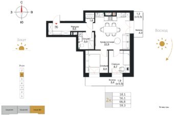 Уютное пространство для самостоятельной жизни Просторная прихожая 5,5 кв.м с местом для шкафаКухня-столовая 16,8 кв.м место для ваших кулинарных экспериментов и отдыха за домашним кинотеатромСпальня 14,8 кв.м с выходом на лоджию, где можно наслаждаться свежим воздухом и красивым видом на окружающий пейзажГардеробная в спальне 2,8 кв.м позволит аккуратно разместить вещи, освободив место в комнатеВанная комната 4,4 кв.м с местом под стиральную машину