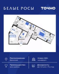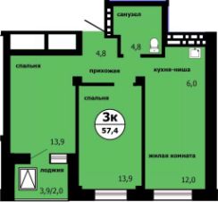 Продаётся 3-комнатная квартира в сданном доме (Лесников, 53 (Панорама, Корпус 2)), срок сдачи: IV-кв. 2024, общей площадью 56 кв.м., на 2 этаже. Дом сдан. Семейная ипотека НЕ ПОДХОДИТ!