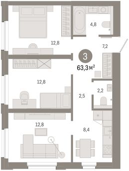 3-комн. квартира с предчистовой отделкой в ЖК ''Город-на-озере'' на 8 этаже. Общая площадь: 63.33 кв.м., жилая: 38.4 кв.м., площадь кухни: 8.4 кв.м. Угловая квартира, окна oбecпeчивaют paвнoмepнoe ocвeщeниe в тeчeниe дня. В квартире один совмещенный и один раздельный санузел. Высота потолков 3.0 м. Дом монолитный, многоподъездный, переменной этажности, от 9 до 24 этажей. Квартира находится в 5-й секции высотой 9 этажей в корпусе 1. На этаже 6 квартир. В подъезде 1 пассажирский и 1 грузовой лифт. Окончание строительства - 4 квартал 2028 года. Оформление сделки по договору долевого участия. Квартира с кухней-гостиной и тремя спальнями в проекте Город-на-озере. Особенности планировки: предчистовая отделка, разнесённые спальни. квартиры в нашей базе: ГРД01-Ж5.8.3. Город-на-озере находится в Центральном районе Новосибирска, на пересечении Ипподромской магистрали и улицы Фрунзе. По этим крупным транспортным артериям легко добраться в любое место города и на автомобиле, и на общественном транспорте. До ближайших автобусных остановок — 5 минут пешком, а до станции метро ''Березовая Роща'' — 10 минут.В радиусе 1,5 км вокруг квартала уже сформирована необходимая инфраструктура. Здесь есть детские сады, школы, больницы, аптеки, спортивные клубы, торговые центры с супермаркетами, ресторанами и кинотеатрами.Для большего комфорта жителей Город-на-озере обеспечат собственной инфраструктурой. В квартале будет свой торговый центр с магазинами и полезными сервисами. Город взял на себя обязательство создать рядом образовательный кластер — два детских сада и две школы.Особенность квартала — озеро Верховое. Жители района смогут прогуляться по набережной, вокруг водоёма, где будет круговой пешеходный маршрут, с разными зонами отдыха. Кроме того, в пешей доступности от Города-на-озере находятся еще два городских парка: ''Центральный'' и ''Березовая роща''. Город-на-озере — проект комплексного развития территории (КРТ) по принципу многофункциональной застройки, или mixed-use. Это когда на одной территории сочетаются жилая, коммерческая, социальная и рекреационная инфраструктура. К 2032 году здесь появятся разноэтажные жилые дома с приватными дворами, образовательный кластер, деловой центр, торговая улица и общественные пространства, открытые для всех горожан. Люди смогут жить и работать в Городе-на-озере, а в обеденный перерыв совершать променад вокруг озера. Локация квартала уникальна: с одной стороны он соседствует с активным уличным фронтом, а с другой — с тихим и спокойным озером с обильным озеленением. При этом участок неровный, перепад высот достигает 30 метров — это высота восьмиэтажного дома.Для разработки проекта мы пригласили лучшие архитектурные бюро из Китая: AEDAS и Turenscape. AEDAS специализируются на создании качественных общественных пространств, а Turenscape — на работах с экосистемой водных объектов. Архитекторы учли особенности местности и объединили урбанистический и природный ландшафты. #z6gdCM