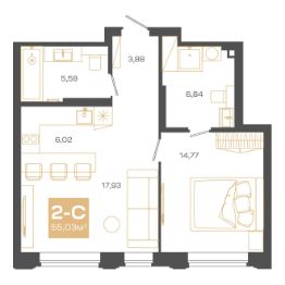 Воплощение уюта и функциональности для яркой, насыщенной жизниПросторная кухня-гостиная объединяет в себе место для семейных трапез и отдыха. Выход на компактную лоджию подарит возможность мгновенно окунуться в атмосферу комфорта и наслаждаться свежим воздухомРодительская спальня продумана до мелочей — здесь предусмотрено место под вместительный шкаф, чтобы уютное пространство способствовало полноценному отдыхуДетская комната — настоящий островок творчества и гармонии. Здесь можно с комфортом разместить рабочую зону, пространство для отдыха и место под систему хранения, чтобы каждый день приносил радость открытий и развитияПросторная прихожая обеспечивает порядок и удобство с первых шагов в квартиреДва санузла — один с ванной и местом для стиральной машины, а второй с предусмотренным местом под душевую кабину — создают идеальные условия для ежедневного комфорта