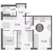 Классическая трехкомнатная квартира для большой семьиПросторная прихожая 5,9 кв.м с местом для шкафа и зоной для обувиКухня 13,2 кв.м для семейных завтраков и ужиновГостиная 12,3 кв.м с домашним кинотеатром станет местом отдыха и сбора гостейРодительская спальня 12,1 кв.м с выходом на лоджию для романтических вечеровДетская 11,7 кв.м идеальное место для вашего ребенка, чтобы играть и развиватьсяДва санузла для удобства и экономии времени всей семьи