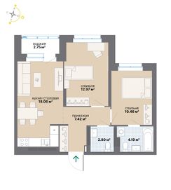 Квартира 489 в подъезде 1. Квартал, в котором рациональность соединяется с творчеством, а архитектурная выразительность — с современными технологиями комфорта. Эффективные планировки, двор-сад без машин, двухуровневая подземная парковка и коммерческие помещения на первых этажах создают функциональную основу комплекса. Статус подчеркивает парадный вестибюль с ресепшн, а художественные акценты в общественных пространствах формируют атмосферу, вдохновляющую на новые идеи.