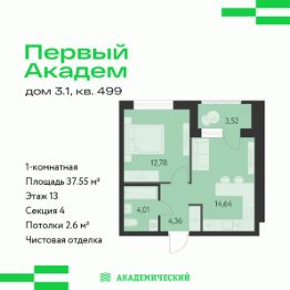 Продается 1-комнатная квартира площадью 37.55 кв.м. от девелопера ''Академический'' в жилом квартале ''Первый Академ''. Срок сдачи дома — 2 квартал 2028 года. Доступна субсидированная ипотека, выгодные условия и скидки напрямую от застройщика.Дом расположен на въезде в район с удобной транспортной развязкой.На территории предусмотрены удобства для жильцов:— видеонаблюдение 24/7,— двор без машин,— кладовые и подземный паркинг с выходом из лифта,— помещение для хранения колясок и велосипедов,— коммерция на первых этажах.Своя спортивная площадка: резиновое покрытие, баскетбольное кольцо, турники, брусья и зона для воркаута. Это идеальное место для тренировок, спортивных игр и утренней или вечерней зарядки под открытым небом.