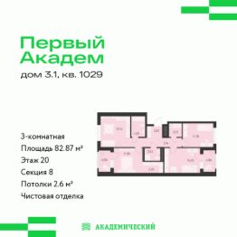 Продается 3-комнатная квартира площадью 82.87 кв.м. от девелопера ''Академический'' в жилом квартале ''Первый Академ''. Срок сдачи дома — 2 квартал 2028 года. Доступна субсидированная ипотека, выгодные условия и скидки напрямую от застройщика.Дом расположен на въезде в район с удобной транспортной развязкой.На территории предусмотрены удобства для жильцов:— видеонаблюдение 24/7,— двор без машин,— кладовые и подземный паркинг с выходом из лифта,— помещение для хранения колясок и велосипедов,— коммерция на первых этажах.Своя спортивная площадка: резиновое покрытие, баскетбольное кольцо, турники, брусья и зона для воркаута. Это идеальное место для тренировок, спортивных игр и утренней или вечерней зарядки под открытым небом.