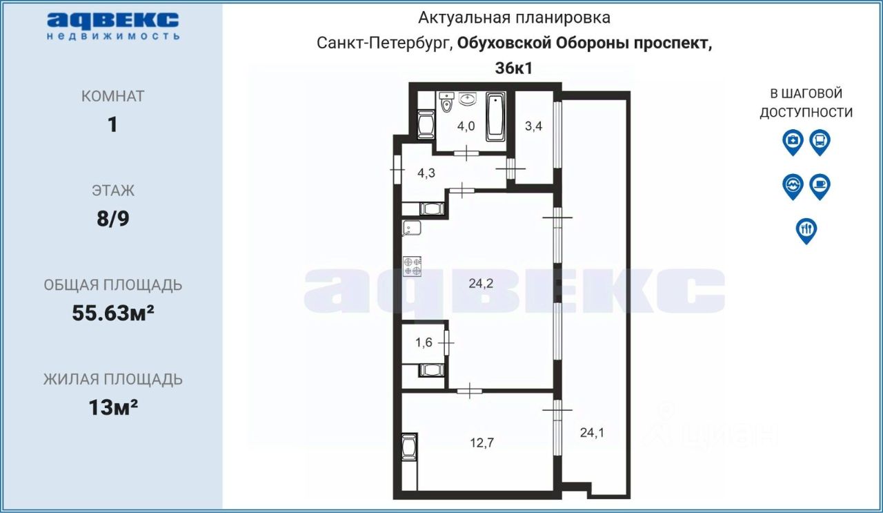55 м² · Этаж 8 из 9