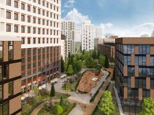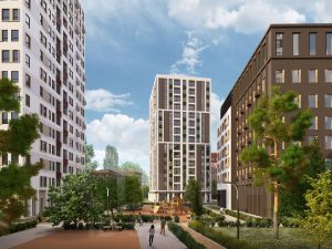 Премиум кварталы ''Маяковка'' представляют собой архитектурную композицию, сочетающую в себе высотные башни и пять дворовых блоков. Это величественное сооружение высотных башен существенно выделяется на фоне городского ландшафта, создавая привлекательный и изысканный облик района, формируя город в городе.