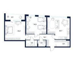 трехкомнатная квартира предлагает идеальное сочетание современного дизайна и функциональности. Просторная кухня-гостиная с теплой лоджией становится центром дома, объединяя зону отдыха и столовую. Это пространство отлично подходит для семейных встреч и дружеских сборищ, обеспечивая комфортную атмосферу для общения и совместных ужинов.Отдельная детская комната создаёт уединённое пространство для ваших детей, обеспечивая им безопасность и комфорт. Она легко адаптируется под потребности вашего ребёнка, будь то игровая зона, место для учёбы или спальня.Большой санузел предлагает все необходимые удобства и достаточное места для хранения. Это помещение отлично спроектировано, чтобы обеспечить комфорт и функциональность в повседневной жизни.Спальня отличается продуманным дизайном, предлагая отдельную рабочую зону, а также нишу для большого шкафа. Это позволяет поддерживать порядок и организованность, создавая уютную атмосферу для отдыха.Эта квартира с отдельной постирочной станет великолепным выбором для тех, кто ценит удобство и современные решения в планировке, создавая идеальные условия для жизни и работы.