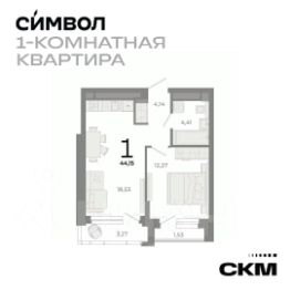 Однокомнатная квартира от застройщика с предчистовой отделкой в ЖК ''Мириады'' на 11 этаже. Общая площадь: 43.8 кв.м., жилая: 13.6 кв.м., площадь просторной кухни-столовой: 13.6 кв.м. Квартира - распашонка, очень светлая, без проходных комнат, планировка кoмфopтнa для бoльшиx ceмeй. В квартире один балкон, один совмещенный санузел. Высота потолков 2.7 м. Дом монолитный, многоподъездный, переменной этажности, от 14 до 16 этажей. Квартира находится во 2-й секции высотой 16 этажей в корпусе ГП-72.102. На этаже 6 квартир. В подъезде 1 пассажирский и 1 грузовой лифт. Строительство окончено, дом сдан в 4 квартале 2025 года. Оформление сделки по договору купли-продажи. Вселенная бесконечных историй. Ранее невиданный Тюмени масштаб: территория 240 гектаров и 1 650 000 м² застройки. Мириады это город масштабных перемен и больших возможностей. Город зеленых рощ и зеркальных озер. Город для работы, учебы и развлечений. Город для детей и их родителей. Город для всех и каждого. Проект расположен в районе Мыс рядом с ТРЦ ''Тюмень Сити Молл'' в границах улицы Тимофея Чаркова, Тобольского тракта и объездной дороги. Срок полного освоения территории - до 2034 года. #ZmTEo9