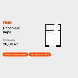 Продаётся квартира-студия площадью 26 кв.м на 10 этаже 10 этажного дома (Корпус 2, Секция 1) проекта ПИК Северный парк. Светлый просторный подъезд на уровне земли, функциональная планировка, большие окна, предчистовая отделка. ''Северный парк'' - жилой квартал в развитом Железнодорожном районе Хабаровска с закрытыми дворами-парками, школой, детским садом и спортхабом. До центра города получится добраться за 10 минут на автомобиле. ''Северный парк'' возводится на пересечении улиц Воронежской и Совхозной, в 10 минутах езды от центра Хабаровска. В проекте будет 30 корпусов. На входе в жилой квартал появится Welcome plaza - площадь с малыми архитектурными формами. Входы в подъезды ''Северного парка'' мы сделаем на уровне земли для комфортного перемещения по территории квартала любым способом: пешком, на самокате или с коляской. Благодаря панорамному остеклению, которое пропускает много естественного света, первые этажи будут просторные и светлые. В квартирах предусмотрены большие окна, застеклённые балконы и лоджии - будет светло и уютно даже зимой. Все квартиры сдаются с предчистовой или полной отделкой на выбор. В каждом дворе будет парк - тихое приватное пространство для жителей, где красиво и уютно в любое время года и можно расслабиться после рабочего дня. Через весь квартал протянется широкий пешеходный бульвар с велодорожками, велопарковками, зонами для отдыха, детскими и спортивными площадками. В ''Северном парке'' будет всё необходимое для комфортной жизни: на первых этажах откроются магазины, кафе и полезные сервисы. Внутри жилого квартала запланировано строительство школы и детского сада. Для удобства жителей предусмотрены многоуровневые паркинги, индивидуальные кладовые и колясочные. Артикул 905661 (Застройщик ООО ''СЗ ПРОЕКТ СТРОЙ'')