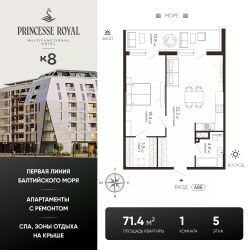 Акция КВАРТИРНИК К8.Цена действует при 100% оплате (в т.ч. ипотекой без субсидирования) или рассрочке до 6 месяцев и первоначальном взносе от 50%. Срок действия акции с 18.11.26-07.02.26.Акция не суммируется ни с какими другими акциями на сайте.ПРИНЦЕСС РОЯЛ (PRINCESSE ROYAL)Эксклюзивные апартаменты на первой линии в ЗеленоградскеЭлитный мультифункциональный отель ''PRINCESSE ROYAL'' расположился в курортном Зеленоградске, прямо на променаде Балтийского моря. В продаже апартаменты на 5-7 этажах. Апартаменты будут реализованы только с дизайнерским ремонтом и в полной комплектации. После ввода объекта, недвижимость можно будет отдать под управление профессиональной управляющей компании и извлекать пассивный доход.Из каждого апартамента открывается завораживающий вид на Балтийское море. Панорамное остекление позволяет наслаждаться морскими пейзажами и закатами, не выходя из дома, а продуманная планировка делает пространство максимально функциональным.Срок сдачи - 3 квартал 2027 года.На территории комплекса расположатся: отель, оздоровительный SPA-комплекс с открытыми и закрытыми бассейнами, комплекс бань, семейный ресторан на первом этаже, ресторан высокой кухни на эксплуатируемой кровле, магазины,конференц-зал, спортзал, источники с лечебно-столовой минеральной водой, поступающей из скважин Королевы Луизы. В зоне ресепшн для вашего комфортного пребывания будет работать сервис 24/7, предоставляющий полный спектр услуг. Подземный паркинг будет сдаваться в аренду.''PRINCESSE ROYAL'' окружает безупречная инфраструктура! Сделайте шаг из дома — и вы на променаде, сразу же спуск к морю. Всего 3 минуты неспешной прогулки — и вы в сердце Зеленоградска. На автомобиле: 5 мин до Куршской косы, 20 мин до аэропорта Храброво, 30 мин до центра Светлогорска, 35 мин до центра Калининграда.Покупка происходит посредством заключения договора долевого участия. Действует классическая программа ипотеки, рассрочка от застройщика или 100% оплата за собственные средства. Помощь с оформлением сделки от ипотечного брокера и юристов застройщика.Больше подробностей вы можете узнать по телефону отдела продаж. Звоните!Не является публичной офертой, предложение ограничено, оценивайте свои финансовые возможности и риски. Застройщик: ООО СЗ Компас. Проектная декларация размещена на сайте наш.дом.рф. Сроки, условия проведения акций и актуальные цены на сайте девелопера. Когда вы выбираете недвижимость от К8 — вы выбираете комфортную, продуманную и растущую в цене среду для жизни или инвестиций.Что вы получаете:1. Недвижимость, которая дорожает: каждый проект создаётся так, чтобы его ценность росла. Вы покупаете актив, который работает на вас.2. Продуманные концепции: вы живете в пространстве с идеей, смыслом и логикой - где каждая деталь служит вашему удобству.3. Настоящий комфорт: планировки, которые экономят место и время. Дома, где технические решения подчинены вашему образу жизни.4. Эстетику, которая радует каждый день: архитектура, на которую приятно