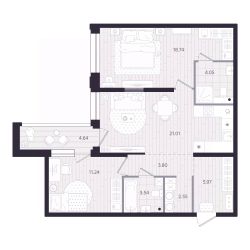 Стильное пространство для самостоятельной жизниВыделенная зона кухни формирует открытое пространство, в котором легко готовить любимые блюда и наслаждаться общением с близкимиЗона гостиной и спальни позволяет создать личный уголок для спокойного сна и тёплых бесед с гостямиСанузел предусматривает душевую и место под стиральную машину, обеспечивает практичность и удобство в повседневной жизниПросторная прихожая встречает вас продуманным местом для хранения, создавая порядок с самого порога