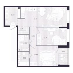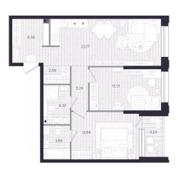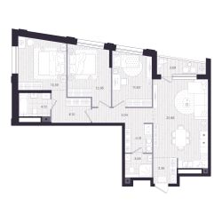 Идеальное зонирование для комфортной жизни семьиКухня-гостиная — светлое, просторное пространство для встреч, семейных ужинов и отдыхаМастер-спальня — уединённая зона комфорта. В комнате предусмотрено место под систему хранения и личный санузел с возможностью установки душевой кабины — комбинация, создающая атмосферу уюта и свободыДетская зона включает две просторные комнаты, каждая с удобными местами для хранения. Здесь можно организовать пространство для сна, учёбы и игр, не перегружая комнаты лишними деталямиОсновной санузел с ванной и местом под стиральную машину идеально подойдёт для всей семьиФункциональная прихожая с возможностью обустроить гардеробную. Вещи всегда под рукой, но не на виду