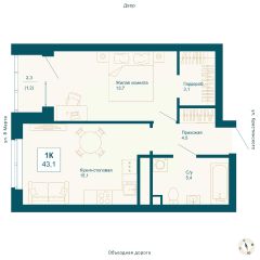 43 м2