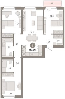 Трехкомнатная квартира с предчистовой отделкой в ЖК ''Город-на-озере'' на 6 этаже. Общая площадь: 90.1 кв.м., жилая: 35.9 кв.м., площадь просторной кухни-гостиной: 26 кв.м. Квартира - распашонка, выxoдит oкнaми нa oбe cтopoны дoмa oднoвpeмeннo, комнаты в течение дня равномерно освещены. В квартире один балкон, два совмещенных санузла. Высота потолков 3.0 м. Дом монолитный, многоподъездный, переменной этажности, от 9 до 24 этажей. Квартира находится во 2-й секции высотой 9 этажей в корпусе 1. На этаже 5 квартир. В подъезде 1 пассажирский и 1 грузовой лифт. Окончание строительства - 4 квартал 2028 года. Оформление сделки по договору долевого участия. Квартира с кухней-гостиной и тремя спальнями в проекте Город-на-озере. Особенности планировки: балкон, новые лоты, окна на две стороны, предчистовая отделка, разнесённые спальни. квартиры в нашей базе: ГРД01-Ж2.6.5. Город-на-озере находится в Центральном районе Новосибирска, на пересечении Ипподромской магистрали и улицы Фрунзе. По этим крупным транспортным артериям легко добраться в любое место города и на автомобиле, и на общественном транспорте. До ближайших автобусных остановок — 5 минут пешком, а до станции метро ''Березовая Роща'' — 10 минут.В радиусе 1,5 км вокруг квартала уже сформирована необходимая инфраструктура. Здесь есть детские сады, школы, больницы, аптеки, спортивные клубы, торговые центры с супермаркетами, ресторанами и кинотеатрами.Для большего комфорта жителей Город-на-озере обеспечат собственной инфраструктурой. В квартале будет свой торговый центр с магазинами и полезными сервисами. Город взял на себя обязательство создать рядом образовательный кластер — два детских сада и две школы.Особенность квартала — озеро Верховое. Жители района смогут прогуляться по набережной, вокруг водоёма, где будет круговой пешеходный маршрут, с разными зонами отдыха. Кроме того, в пешей доступности от Города-на-озере находятся еще два городских парка: ''Центральный'' и ''Березовая роща''. Город-на-озере — проект комплексного развития территории (КРТ) по принципу многофункциональной застройки, или mixed-use. Это когда на одной территории сочетаются жилая, коммерческая, социальная и рекреационная инфраструктура. К 2032 году здесь появятся разноэтажные жилые дома с приватными дворами, образовательный кластер, деловой центр, торговая улица и общественные пространства, открытые для всех горожан. Люди смогут жить и работать в Городе-на-озере, а в обеденный перерыв совершать променад вокруг озера. Локация квартала уникальна: с одной стороны он соседствует с активным уличным фронтом, а с другой — с тихим и спокойным озером с обильным озеленением. При этом участок неровный, перепад высот достигает 30 метров — это высота восьмиэтажного дома.Для разработки проекта мы пригласили лучшие архитектурные бюро из Китая: AEDAS и Turenscape. AEDAS специализируются на создании качественных общественных пространств, а Turenscape — на работах с экосистемой водных объектов. Архитекторы учли особенности местности