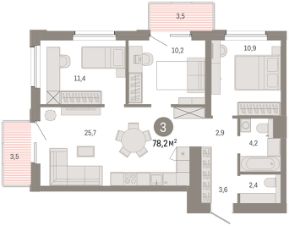 Идеальное зонирование для комфортной жизни семьи Просторная кухня-гостиная с выходом на лоджию — место для общения, отдыха и вечеров в кругу семьи Функциональная прихожая с продуманной системой хранения помогает организовать порядок без лишних усилий и поддерживать пространство свободным от лишних вещей Окна на две стороны обеспечат солнечный свет в течение всего дня Мастер-спальня с собственной ванной — уединённая зона комфорта. В комнате предусмотрено место под систему хранения и личный санузел с возможностью установки душевой кабины — комбинация, создающая атмосферу уюта и свободы Вторая спальня - с местом для хранения и ТВ-зоной Детская комната с удобными местами для хранения. Здесь достаточно пространство для сна, учёбы и игр Основной санузел с ванной и местом под стиральную машину идеально подойдёт для всей семьи