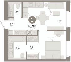 Идеальный вариант для самостоятельной жизни Функциональная кухня с выходом на лоджию и террасу — светлое пространство для встреч, семейных ужинов и отдыха Отдельная спальня с ТВ-зоной и зоной для хранения — уголок комфорта и уединения. Просторная прихожая с возможностью установки гардеробной помогает организовать порядок без лишних усилий и поддерживать пространство свободным от лишних вещей Санузел — просторный и функциональный. Достаточно места для всей необходимой сантехники, а грамотная планировка делает пространство удобным