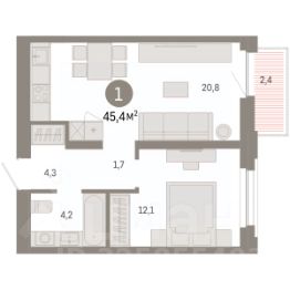 Просторная 1-комн. квартира с предчистовой отделкой в ЖК ''Зарека'' на 5 этаже. Общая площадь: 45.38 кв.м., жилая: 12.1 кв.м., площадь просторной кухни-гостиной: 20.8 кв.м. Все окна выходят на одну сторону. В квартире один балкон, один совмещенный санузел. Высота потолков 2.7 м. Дом монолитный, многоподъездный, переменной этажности, от 6 до 16 этажей. Квартира находится в 4-й секции высотой 8 этажей в корпусе 5-2. На этаже 6 квартир. В подъезде 1 пассажирский и 1 грузовой лифт. Окончание строительства - 4 квартал 2026 года. Оформление сделки по договору долевого участия. Квартира с кухней-гостиной и одной спальней в жилом районе ''Зарека''. Особенности планировки: балкон, предчистовая отделка. квартиры в нашей базе: ЗРК05.2-Ж4.5.4. Проект На планировочную структуру ''Зареки'' повлияла близость к автомобильному мосту Челюскинцев. Мы расположили жилые здания так, чтобы они постепенно удалялись от проезжей части. Приём напоминает лесенку: чем сильнее мост возвышается над участком застройки, тем дальше по отношению к нему стоят дома. Этот ступенчатый сдвиг позволил нам сформировать буфер между кварталами и оживлённой магистралью. Мы намерены высадить здесь высокие деревья и создать дополнительную защиту от дорожных шума и пыли. В границах нашего участка мы намерены разместить школу и два встроенных детских сада на 135 и 150 мест. Общественные пространства С севера на юг территорию будет пронизывать пешеходный бульвар. Мы мыслим это общественное пространство как главный центр притяжения. На нём будут сосредоточены основные детские игровые и спортивные зоны, места для встреч и спокойного отдыха. Он также сыграет роль мостика, ведущего к другим нашим проектам — ''Европейскому кварталу'' и ''Дому у озера''. Одна из базовых идей мастер-плана касается береговой линии. Сегодня озеленение этой территории носит стихииныи характер, а прямому доступу к Туре препятствует дамба. Мы хотим благоустроить пространства у воды и открыть их для людей. Архитекторы спроектировали систему многоярусных троп и спусков к реке, смотровые площадки и места для активного отдыха и пикников. #Z4e9ve