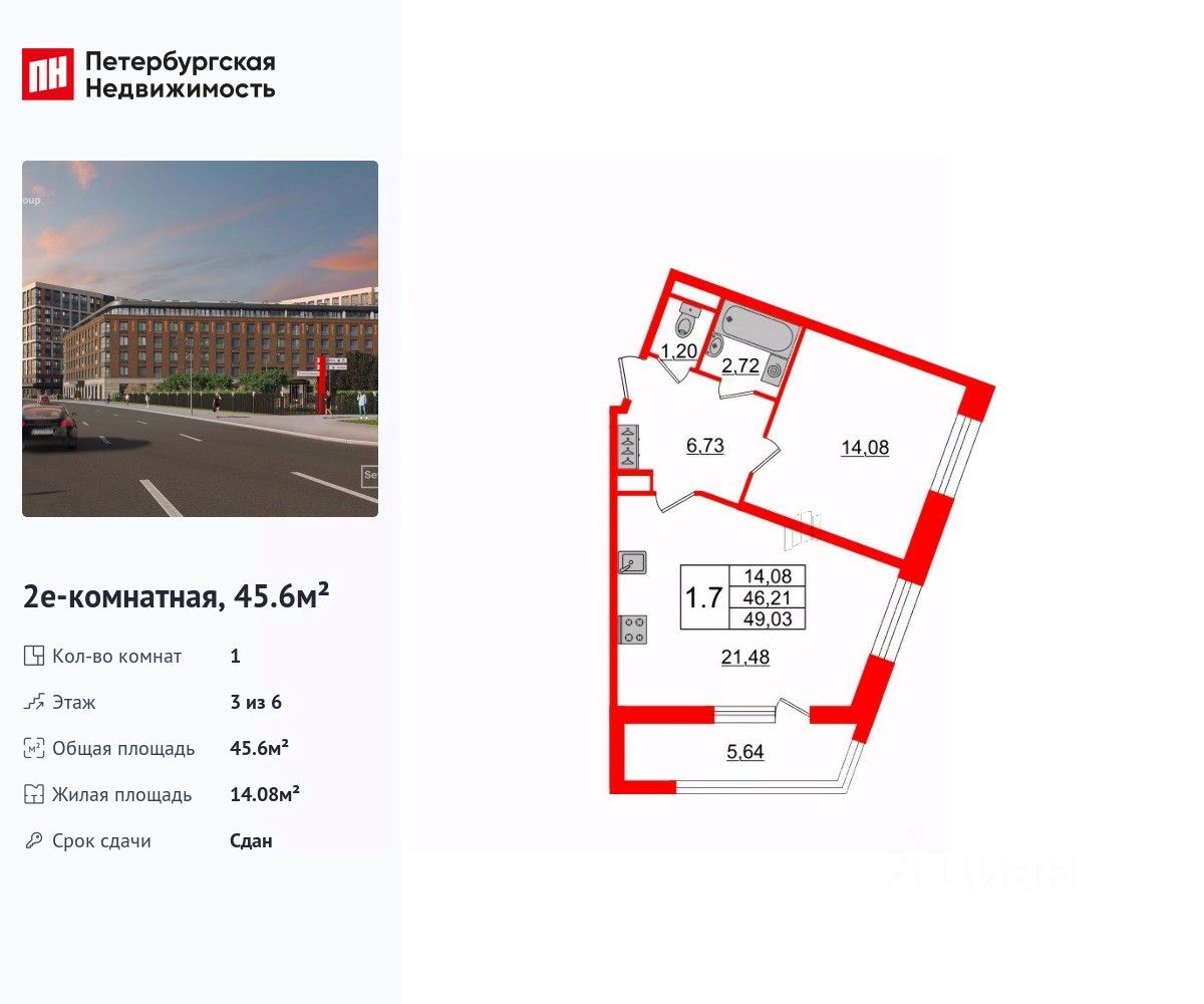 45 м² · Этаж 3 из 6