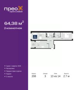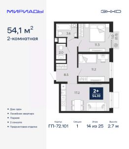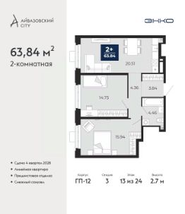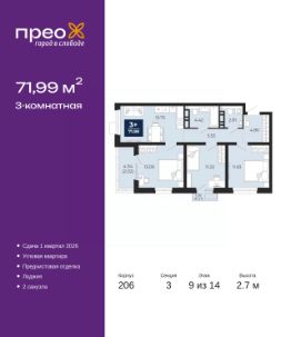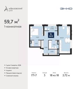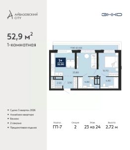 Продается 1-комн. квартира с предчистовой отделкой в ЖК ''Айвазовский City'' на 23 этаже. Общая площадь: 52.9 кв.м., жилая: 10.7 кв.м., площадь просторной кухни-столовой: 23.8 кв.м. Все окна выходят на одну сторону. В квартире один балкон, два совмещенных санузла. Наличие террасы в квартире дает возможность для обустройства дополнительной площади. Высота потолков 2.72 м. Дом монолитный, многоподъездный, переменной этажности, от 9 до 24 этажей. Квартира находится во 2-й секции высотой 24 этажа в корпусе ГП-7. На этаже 7 квартир. В подъезде 1 пассажирский и 2 грузовых лифта. Окончание строительства - 3 квартал 2026 года. Оформление сделки по договору долевого участия. Новый жилой район располагается в живописном месте на берегу Туры в центральной части города. Принципиально новое пространство для жизни в центре современного города для тех, чьи мечты сбываются, кто нацелен на постоянный рост, перемены к лучшему для себя и своих близких.Каждая деталь Айвазовский City вдохновляет и заряжает на новые свершения: авторская архитектура, сбалансированная продуманная инфраструктура, дизайнерские дворы со спортивными и детскими площадками, парковые зоны с фонтанами, водный канал, украшающий центральный прогулочный маршрут района и многое другое. В 2019 года проект стал лауреатом престижной премии Urban Awards 2019 в номинации ''Лучший строящийся региональный жилой комплекс бизнес-класса''. Главная особенность Айвазовский City - соседство разных архитектурных школ в рамках одного дома. Изысканная классика, выразительная эклектика и оригинальный модерн - жить в одном из таких домов настоящий повод для гордости. Айвазовский City это идеальное сочетание комфорта, технологий и развитой инфраструктуры. Вход в подъезд возможен с улицы и со двора. Отправляясь на работу или за покупками, жители могут выйти с внешней стороны дома, а для прогулки с ребенком со стороны двора. Экологически чистые материалы и энергосберегающие технологии, качественное освещение общественных зон, видеонаблюдение по всей территории жилого района (в том числе в подъездах, лифтах и в подземном паркинге), закрытые дворы с доступом только для жителей Айвазовский City. Часть домов в Айвазовский City будут оснащены подземным паркингом. Востребованный в нашем климатическом поясе формат хранения автомобилей защитит собственность владельца в любое время года. Аккредитация в банках: ОАО ''Альфа-Банк'', ''Сбербанк России'', ПАО Банк ''ВТБ'', ПАО ''Газпромбанк'', ПАО ''Совкомбанк'' и других. #zMiCd0