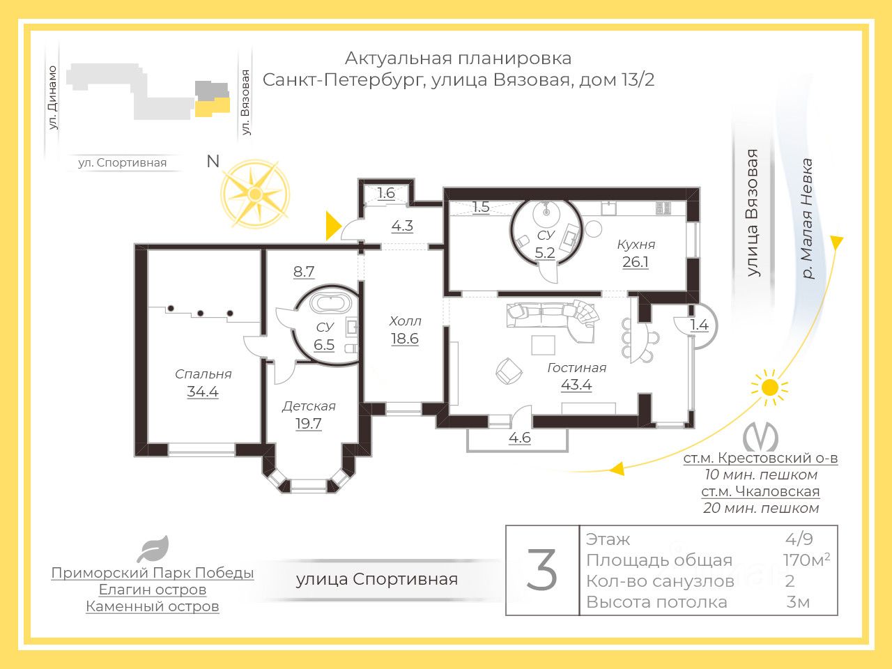 Арт. 115393128 Солнечная двусторонняя квартира с двумя спальнями и большой кухней-гостиной. ЛОКАЦИЯ: Дом расположен в обособленной части Петровского острова. Рядом с домом находится обустроенная набережная реки Ждановка и выезд с острова через мост Бетанкура. Парк и набережная - при выходе из двора. ДОМ: ЖК ''Ostrov'' (''Строительный трест'') Дом бизнес-класса 2017 г. с просторным внутренним двором без машин. Стильная отделка холлов и внешних фасадов, красивый ландшафт со сквером. Подземный двухуровневый паркинг. Круглосуточное видеонаблюдение. Многоступенчатая система очистки воды. На первом этаже - колясочная. КВАРТИРА: Светлая двусторонняя квартира с двумя просторными спальнями и большой кухней-гостиной. Окнa выхoдят нa 2 cтороны, ceвер и юг - во двор и на Ремесленную улицу. Две спальни: 21 + 21 кв. м. Одна из них - мастер спальня с большим санузлом площадью 8,4 кв.м. Всего в квартире два санузла с душевой зоной. Кухня-гостиная: 29 кв. м. Большая утеплённая лоджия - 6.5 кв. м (не входит в общий метраж) ИНЖЕНЕРИЯ: На кухне техника - BOSCH В спальнях и гостиной - кондиционеры HAIER