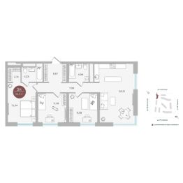 Продаётся 3-комнатная квартира в строящемся доме (Дом 7), срок сдачи: IV-кв. 2028, общей площадью 70.1 кв.м., на 3 этаже. Квартира от застройщика КОМОССТРОЙ. Покупка защищена ФЗ 214 с использованием эскроу счетов.''Умные кварталы А14'' - новый микрорайон комплексной застройки на улице Камбарской, вдоль живописной хвойной аллеи, вблизи гипермаркета Леруа Мерлен. План развития микрорайона включает новую общеобразовательную школу и 2 детских сада на 105 и 200 мест каждый. Рядом расположены: школа 74, детские сады 278 и 280, медцентр Академия Здоровья, гипермаркеты Леруа Мерлен и Лента, спортивный комплекс Байкал.Помимо школы и двух детских садов на территории микрорайона запроектировано размещение нескольких зон отдыха: ботанической аллеи, множества велодорожек, пикник-парка с беседками и собственным прудом, АRT-пространства с дизайнерской аркой и подсветкой из множества гирлянд.На первых этажах размещаем просторные колясочные. Вы сможете оставить коляску, велосипед или электросамокат на первом этаже, не поднимая их до своей квартиры, и они не будут занимать место в вашей прихожей или кладовке. В колясочных предусмотрены поддоны для мытья колес велосипедов и детских колясок, а также лап ваших домашних питомцев. Перед входами в подъезды предусмотрены велопарковки.Из окон А14 будут открываться замечательные виды на пойму реки Позимь, лес микрорайона ''Ракетный''.Квартира:Большинство квартир запроектировано в современных СМАРТ-планировках, с большими кухнями-столовыми и уютными спальнями, где каждый квадратный метр продуман до мелочей! Предусмотрена периметральная поквартирная разводка труб отопления в конструкции пола. Мы выполняем все капитальные и грязные работы до передачи квартиры собственнику. Стены подготавливаем под оклейку обоями. На полу выполняем полусухую стяжку со звукоизолирующим слоем. Устанавливаем надежные металлические входные двери с тепло- и звукоизоляцией. Выполняем прокладку электросетей, устанавливаем электросчетчики, одну розетку и один выключатель в прихожей.По проекту, водопровод и канализацию заводим в помещение с установкой заглушек, устанавливаем счётчики воды. Окна выполняем с повышенной площадью остекления, высота подоконников - 0,72 м. Устанавливаем оконные конструкции с повышенными тепло- и звукоизоляционными свойствами. Применяем ПВХ профили с повышенными теплоизоляционными свойствами и двухкамерные стеклопакеты.По дополнительному соглашению мы можем выполнить в вашей квартире чистовую отделку по нашему типовому проекту.Умный дом:В микрорайоне ''Умные кварталы А14'' мы реализовали новый, расширенный пакет системы Умный Дом. Это целый перечень оборудования, объединенного в единый сервис, функциями которого можно управлять удалённо, прямо с вашего смартфона