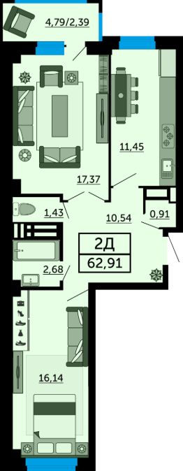 В продаже двухкомнатная квартира в новостройке. . Лучшее решение решение для жизни, под сдачу или для инвестиций. Данная планировка это двухкомнатная квартира евроформата и современное решение для тех, кто ценит функциональность пространства. Здесь есть всё для ваших идей и потребностей: универсальные по размеру комнаты, большая прихожая и собственный балкон. Наиболее выгодная цена на этапе строительства. Успейте забронировать квартиру напрямую от застройщика. В сотрудничестве с ведущими банками России предлагаем вам выгодные условия при приобретении квартиры в ипотеку в жилом комплексе: Первоначальный взнос: от 20% (обязательно). Процентные ставки: от 6% годовых (условия действуют по программе ''Семейная ипотека'').Дом сдан Только сейчас, при покупке квартиры ставка 0,11% на первые 12 месяцев! Жилой комплекс ''Сердце Ростова 2'', предлагающий уникальный формат квартир с террасами и объединяющий всё необходимое для комфорта городской жизни. Включает девять многоэтажных домов, ТРЦ и детский сад. Расположен в Ворошиловском районе, по адресу, ул. Ларина, 45.- Монолитно-каркасная технология строительства.-Облицовка кирпич в соответствии с ГОСТом- Срок ввода в эксплуатацию III квартал 2025 года.- 9 литеров по 26 этажей.- 10 минут до центра города.- ТОПЖК: 2 место в номинации ''ЛучшийЖК в Ростовской области''. - Рядом ТЦ ''Горизонт'', вЖК собственный ТЦ.- В наличии квартиры с террасами.- Закрытая территория, собственный детсад.- Продуманные зоны отдыха вЖК.- Рядом 10 школ, 12 детсадов, 2 вуза. О застройщике Московская Строительная Компания ТОП-застройщик по объему текущего строительства жилья и ввода в эксплуатацию в Ростовской области. На рынке с 2012 года, за это время возведено 538 000 кв.м. жилья. На этапе строительства 325 000 кв.м. в 7 жилых комплексах г. Ростова-на-Дону. ГК ''МСК'' работает в соответствии с 214-ФЗ. Способ оплаты При покупке квартиры от застройщика ''МСК'' Вы можете использовать все популярные сейчас способы: 100% оплата. Когда у Вас есть вся сумма в наличии. Рассрочка (подробные условия и размеры первоначального взноса уточняйте у менеджеров застройщика). Первоначальный взнос и график платежей определяем индивидуально. Ипотека. Сотрудничаем с ведущими банками России и поможем подобрать выгодную ипотечную программу. Материнский капитал или сертификат АЖП. Можно использовать на участие в долевом строительстве или на погашение ипотеки. Если у Вас возникли вопросы, позвоните или напишите нам. Менеджер все подробно расскажет и поберет для Вас лучший вариант. Бронирование квартиры совершенно бесплатно! Вам ответят в течении 30 минут. Для агентств недвижимости: Если вы хотите стать нашим партнёром или уже являетесь им, вам необходимо позвонить по номеру телефона, указанному на официальном сайте ''МСК'' в разделе Контакты . Наш менеджер по работе с агентствами недвижимости организует все этапы сделки и оформит необходимую документацию.