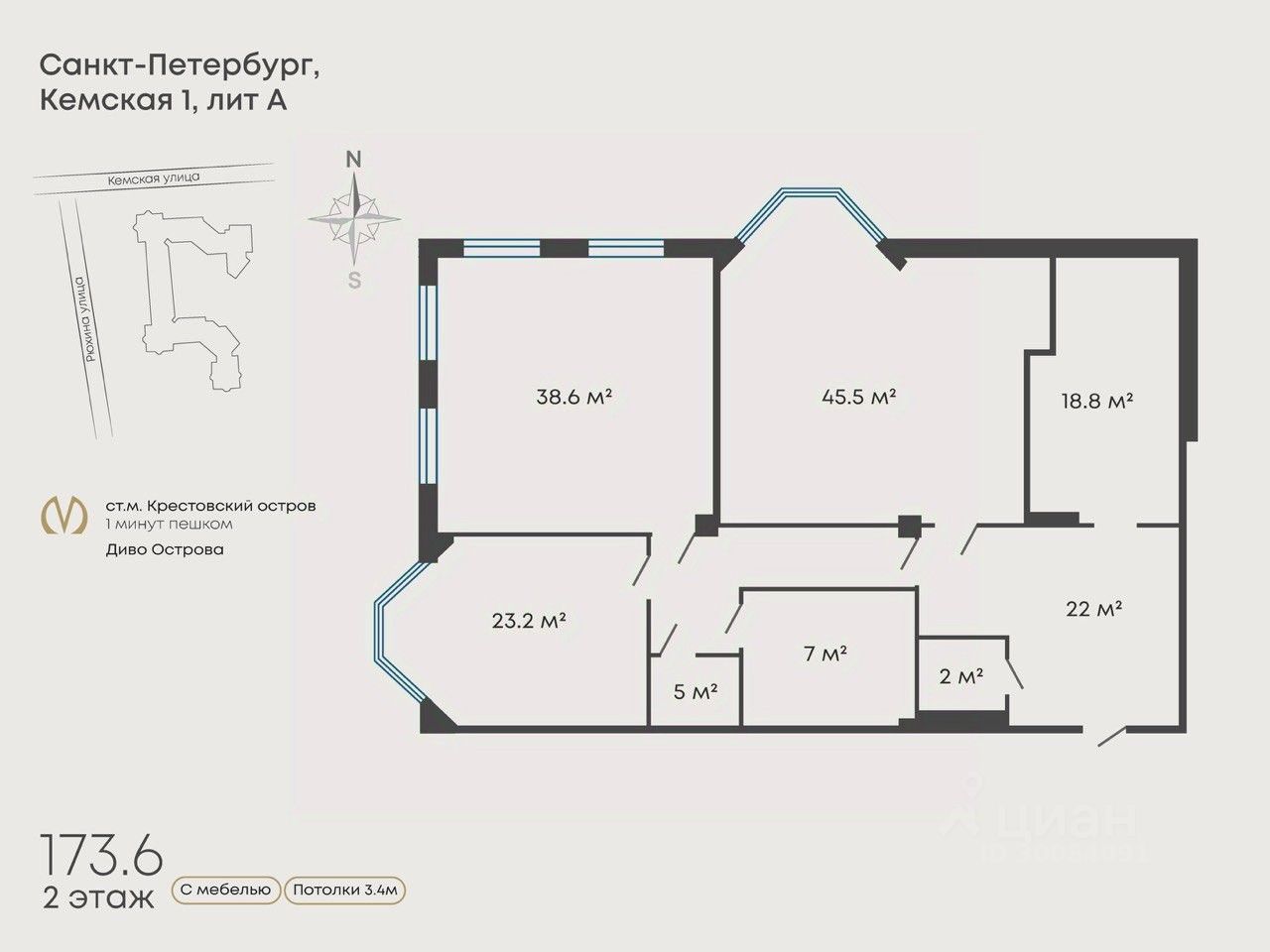 ID: 584669 Двухкомнатная квартира с дизайнерским ремонтом в премиальном ЖК ''Премьер Палас'' у Малой Невки. Предлагаем вам стильную двухкомнатную квартиру с уникальным интерьером и продуманной эргономичной планировкой на две стороны. Высокие потолки, качественные материалы отделки и уникальные интерьерные детали (потолочная розетка ручной работы). Квартира почти не использовалась — всё готово для проживания, дополнительных вложений не потребуется. О комплексе: - Огороженная территория с профессиональной охраной и видеонаблюдением 24/7 — спокойствие для вас и вашей семьи. - Во дворе нет машин, благоустроенные зоны отдыха, игровые и спортивные площадки. - Подземный паркинг с лифтом напрямую к вашей квартире, возможна покупка парковочного места дополнительно. - Частная набережная с прогулочными дорожками и пирсом для яхт — редкая возможность жить у воды в центре города. - На территории работают пекарня, фермерские лавки, салоны красоты, уютные кафе и винный бутик. Всё необходимое — буквально в нескольких шагах от дома. Инфраструктура: - Рядом престижные школы, детские сады, гимназии, фитнес-центры и спортивные объекты. - Пешая доступность до зеленых парков Крестовского, Елагина и Каменного островов. - До метро ''Чкаловская'' всего 15 минут пешком, быстрый выезд на ЗСД обеспечит удобное сообщение с любым районом города. Документы полностью готовы, прямая продажа от единственного собственника, без обременений. Полная стоимость в договоре. Если вы цените комфорт, приватность и качество — эта квартира точно вас впечатлит. Звоните и приходите на просмотр, чтобы увидеть всё своими глазами! Номер объекта: #1/584669/14501